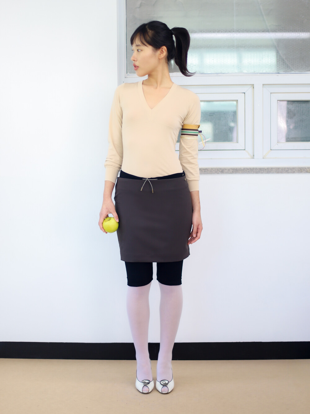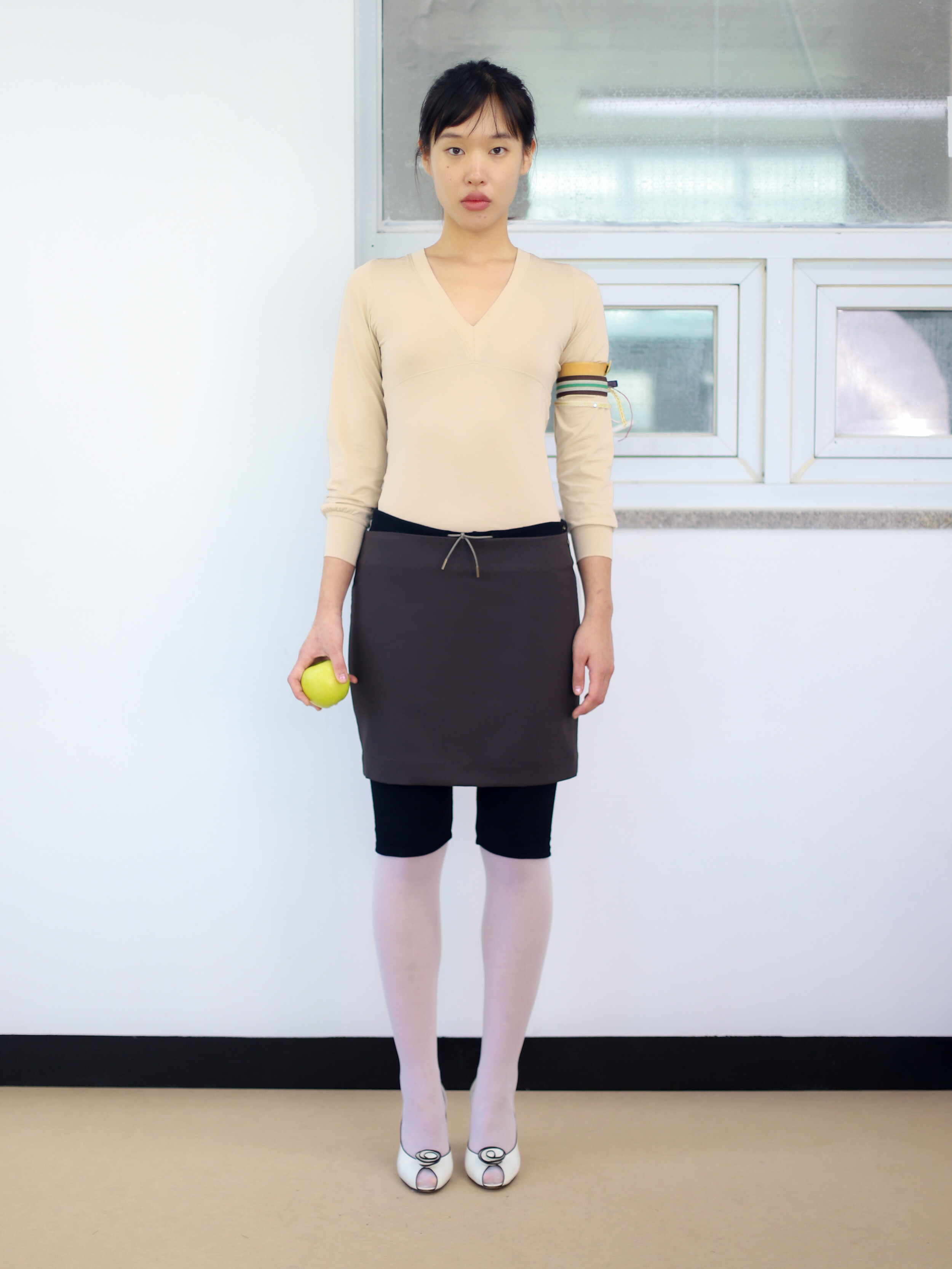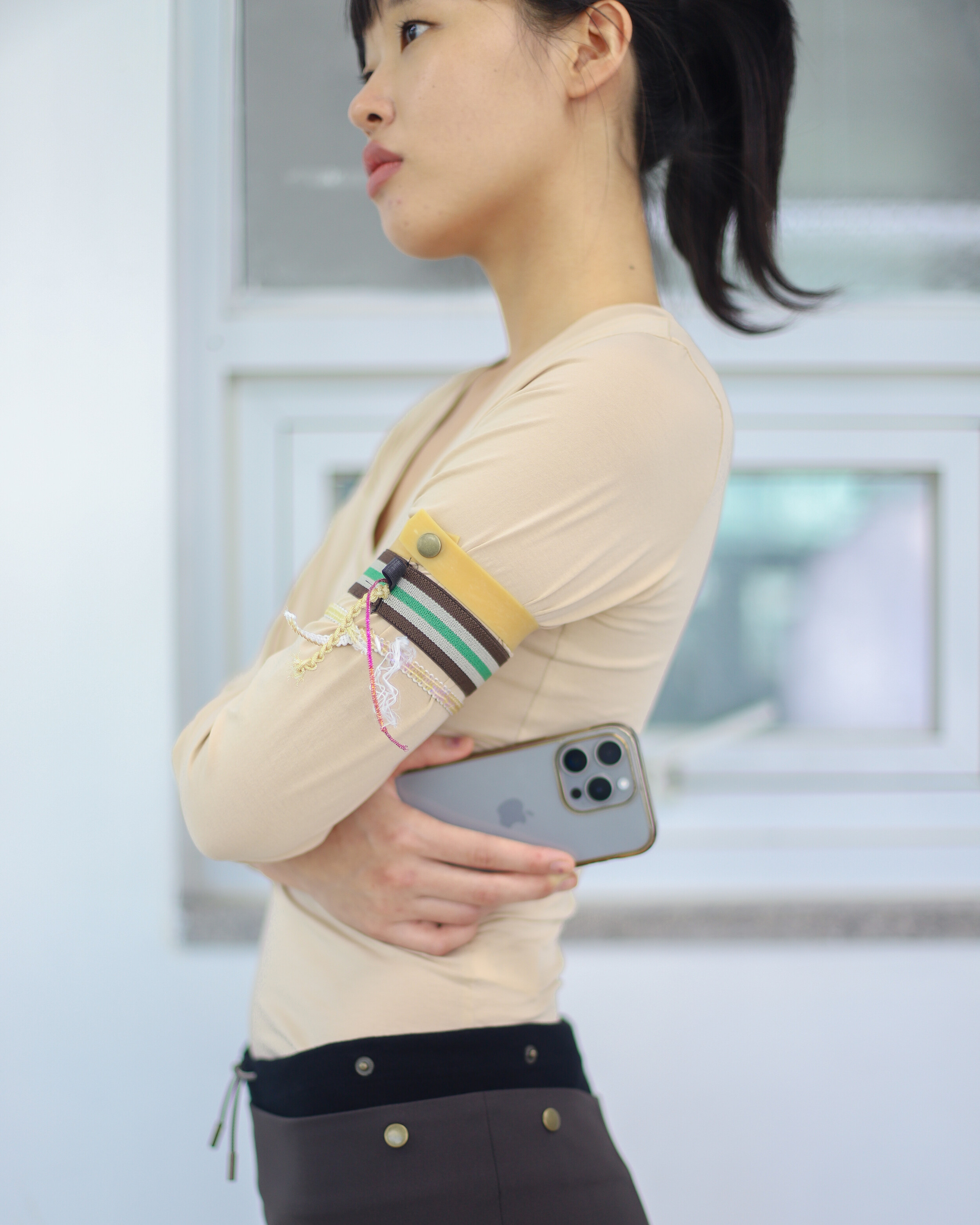 좁고 깊은 브이넥 쉐입과 프론트 패널 구성이 포인트가 되는 탑. 볼륨감 있는 소매 디자인과 넓게 잡힌 소매 커프가 클래식한 뉘앙스를 돋보이게 합니다.