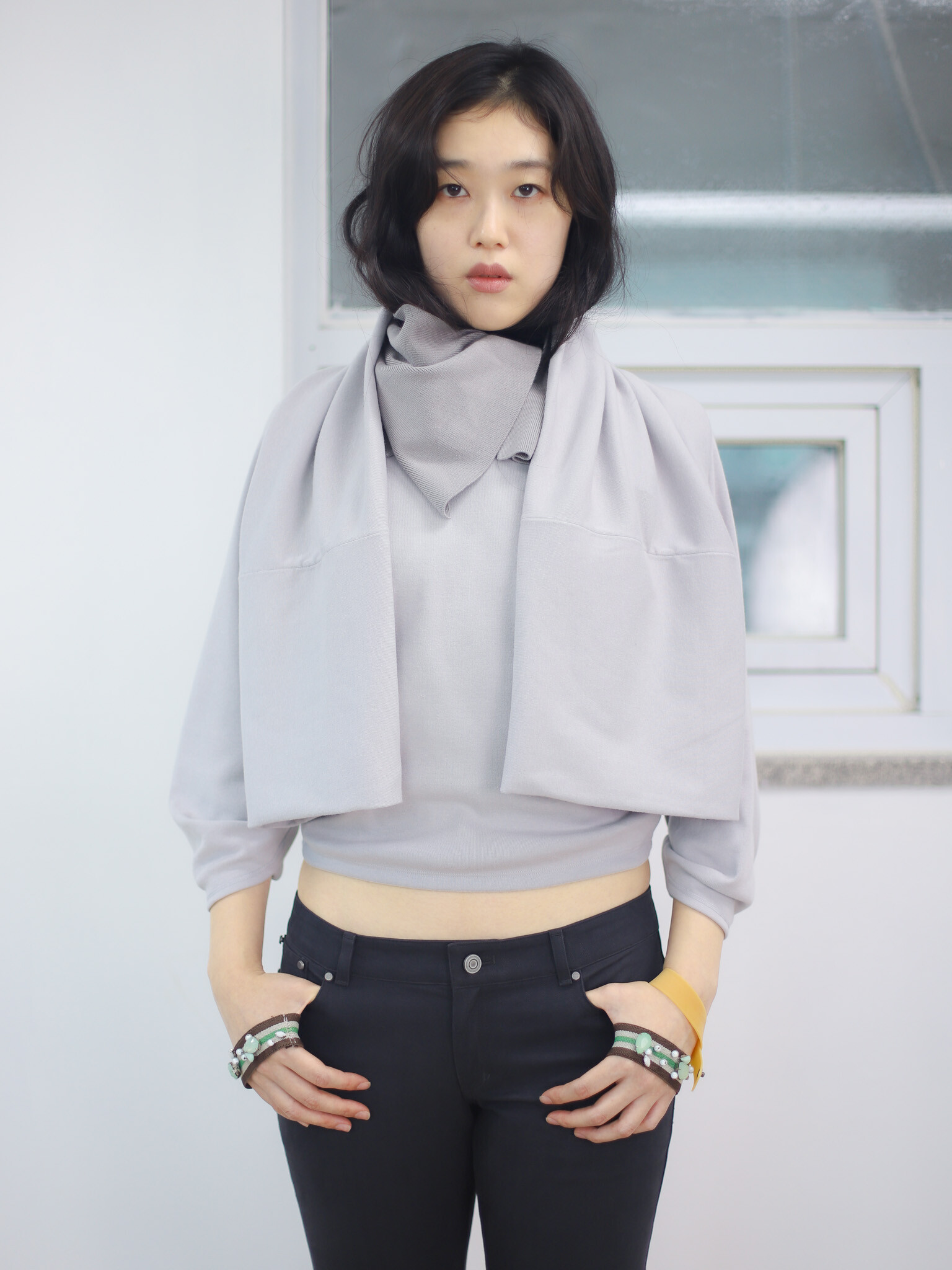 ▪︎ 니트 소재의 더블 레이어가 있는 머플러