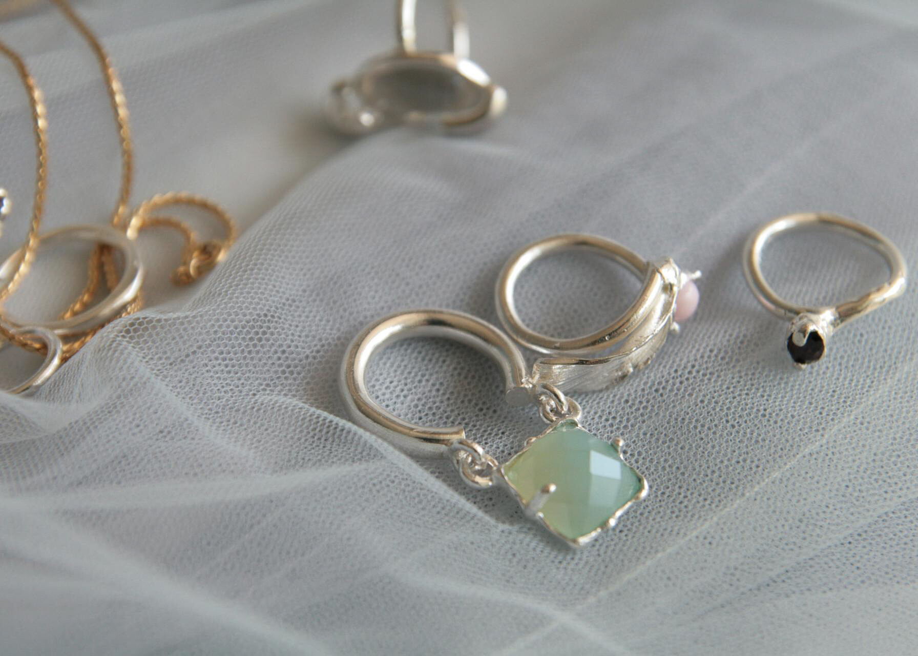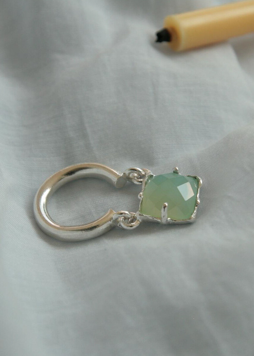 Memories of gold 의 쥬얼리, Glacier on your finger. 시원한 컬러의 오닉스가 고리로 연결된 디자인의 링. 손을 움직이면 위아래로 접히는 디자인.볼드한 실버 링에 큰 스톤으로 투박할 수 있는 볼륨에 작은 연결고리들로 변주를 주었습니다.