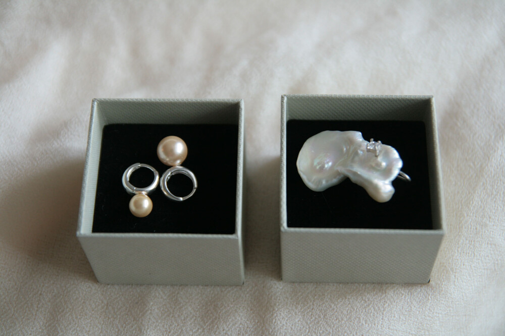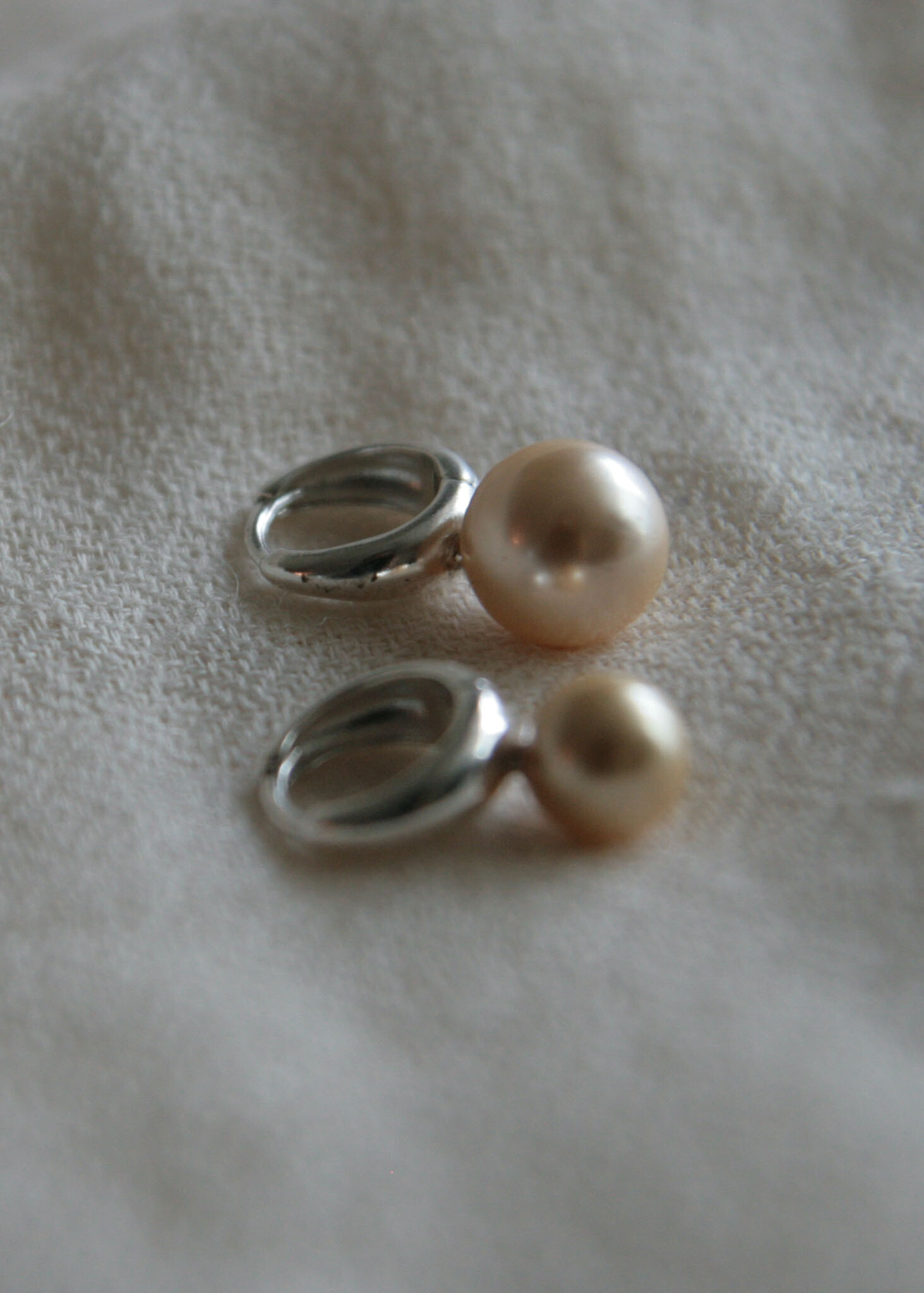 Memories of gold 의 쥬얼리, Harmony Earrings pair. 은은하게 골드 컬러가 감돌아 피부와 소프트하게 어우러지는 펄 이어링입니다. 페어지만 사이즈가 다른 형태로 리듬감 있어, 재미있는 케미컬 무드를 보여줍니다.