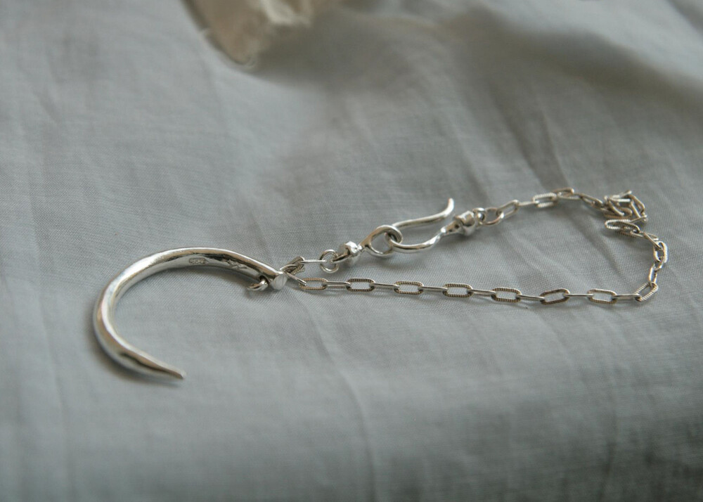Memories of gold 의 쥬얼리, Hook on your hand. 후크 모양의 참이 손등으로 떨어지는 팔찌.팔을 내릴 때 손등에 위치해 긴팔 상의를 입으면 후크가 살짝 보이게 됩니다. 부드러운 촉감의 옷과 함께 착용해 보세요.
