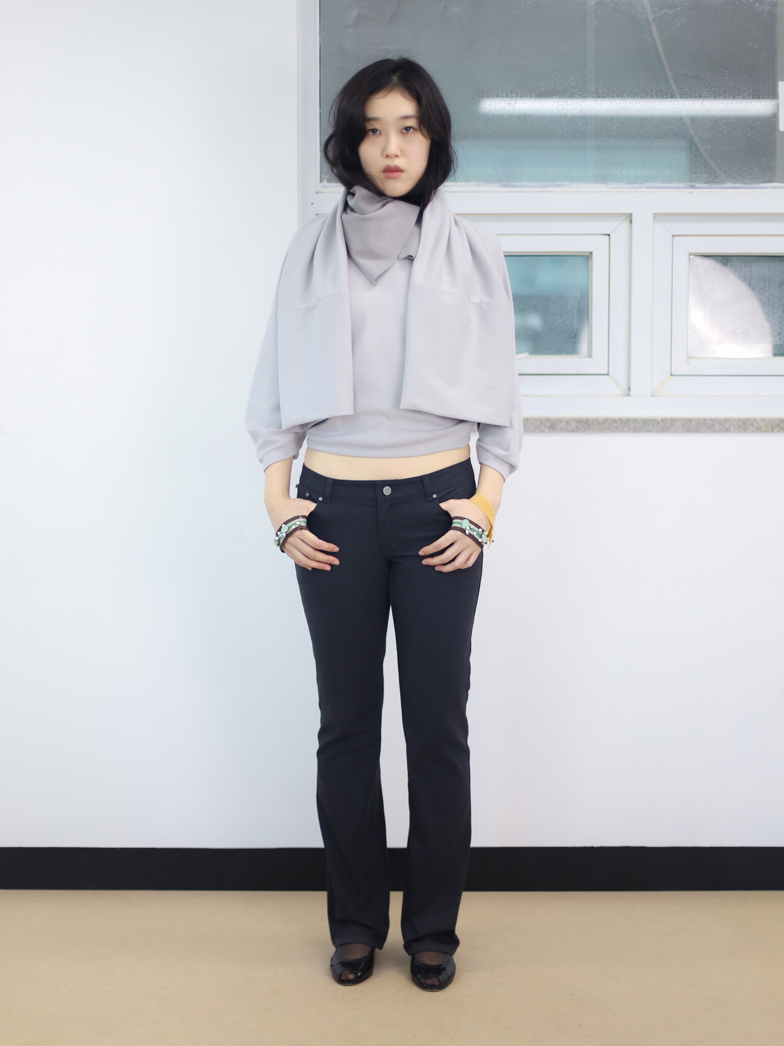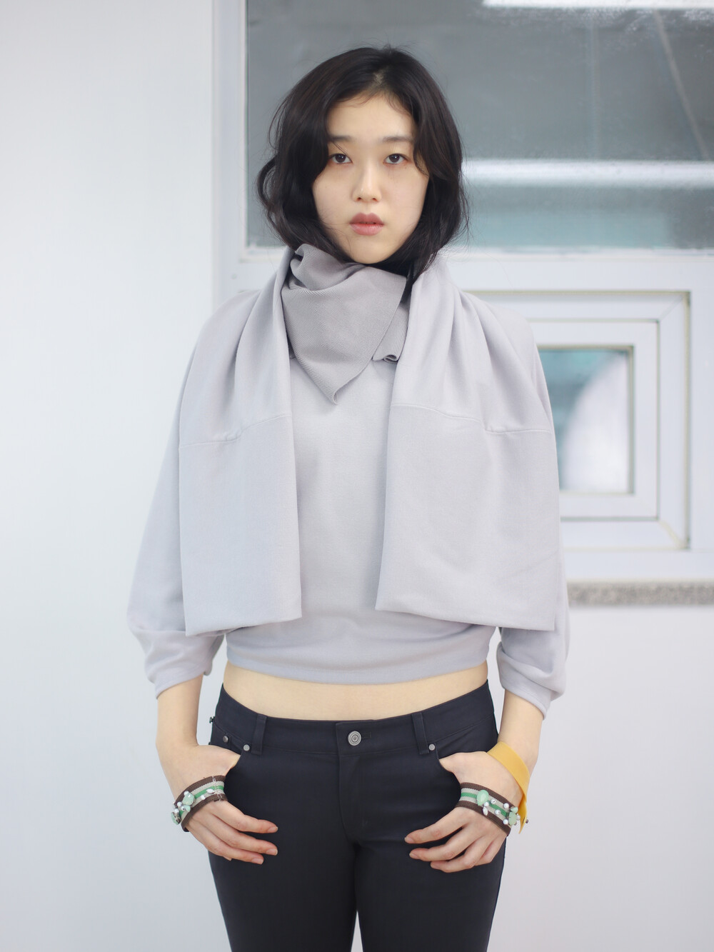 ▪︎ 하이 넥으로 볼륨감 있게 목을 감싸는 숄을 위한 뒷목의 바텍