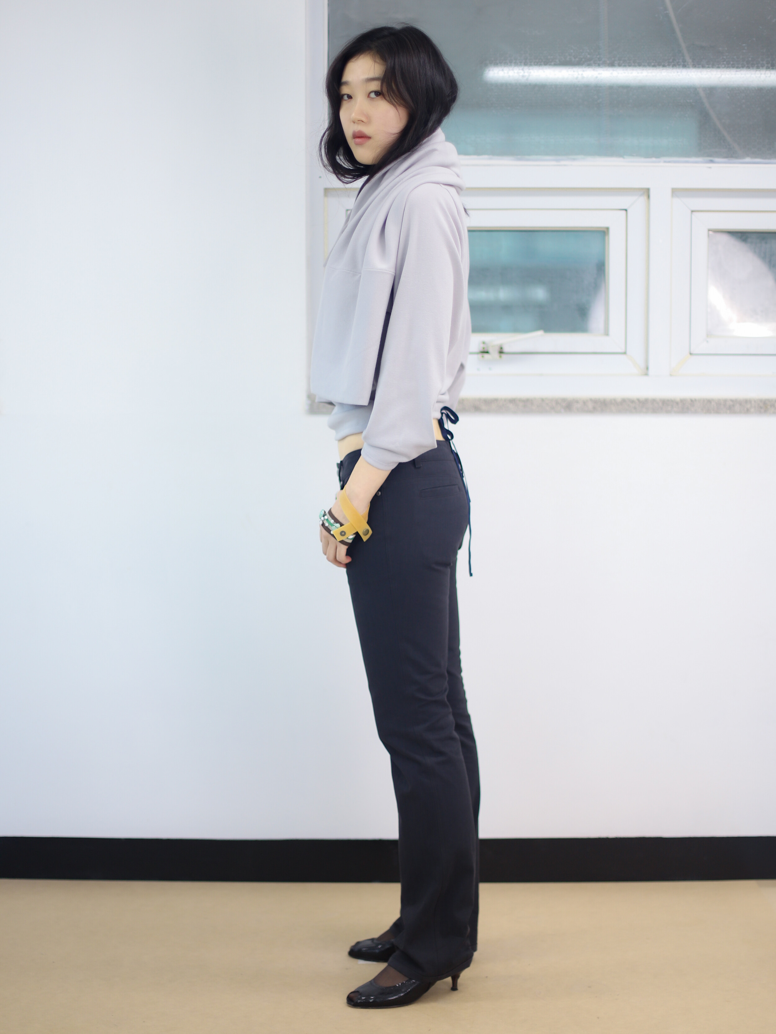 ▪︎ 와이드한 숄의 양측 사이드 포켓으로 손을 넣으면 볼륨감이 추가되는 형식의 탑
