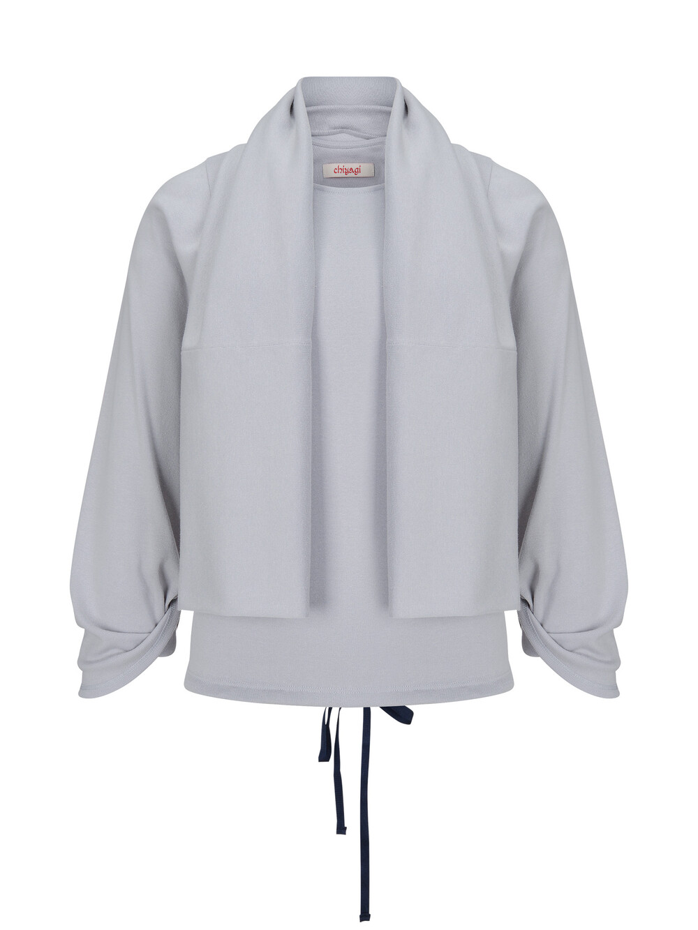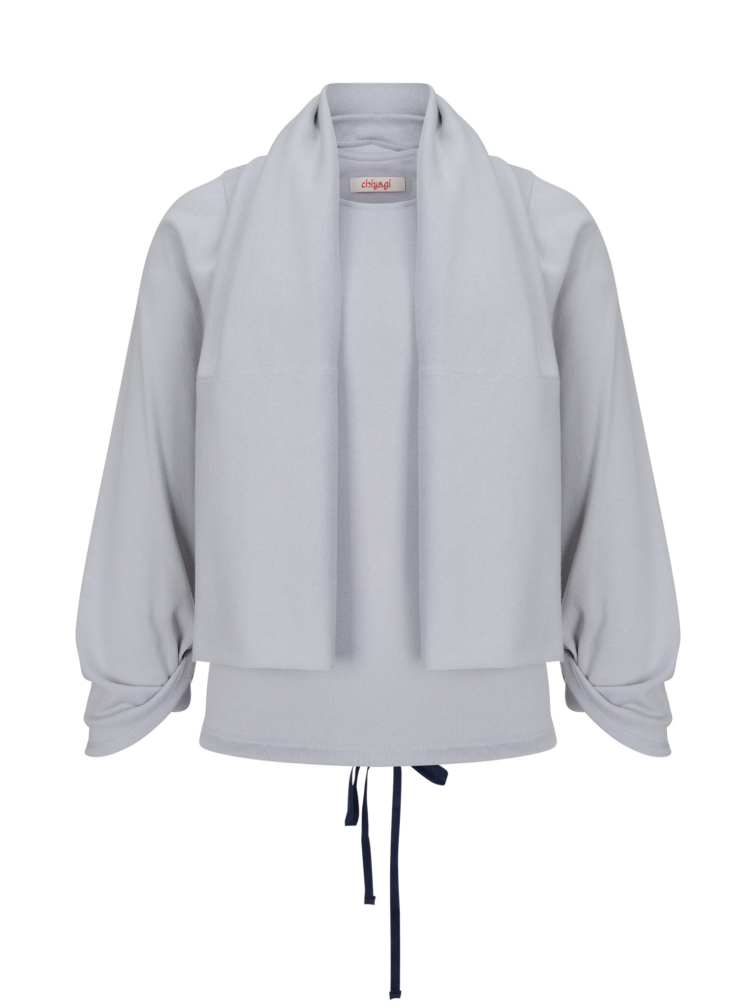 ▪︎ 벌룬 핏 탑에 사이드 포켓 숄이 겹쳐진 탑