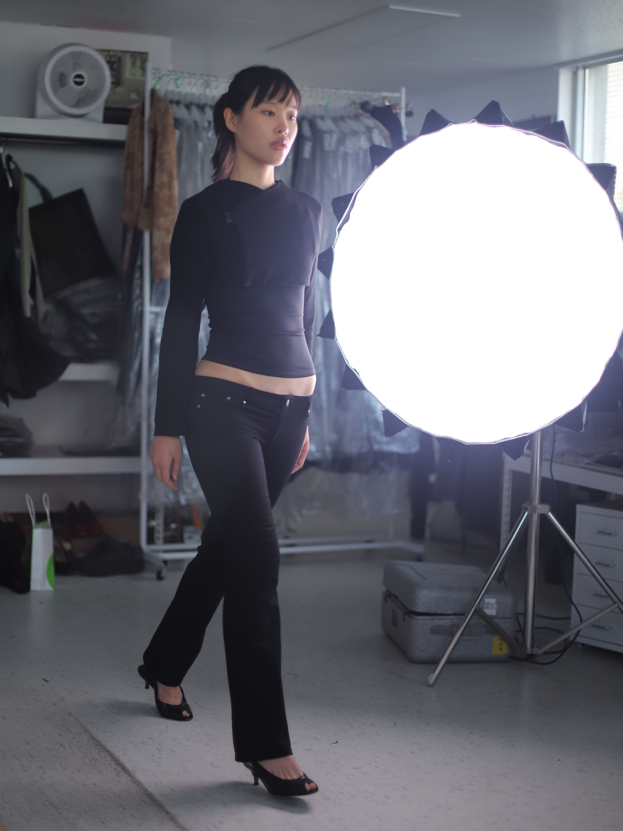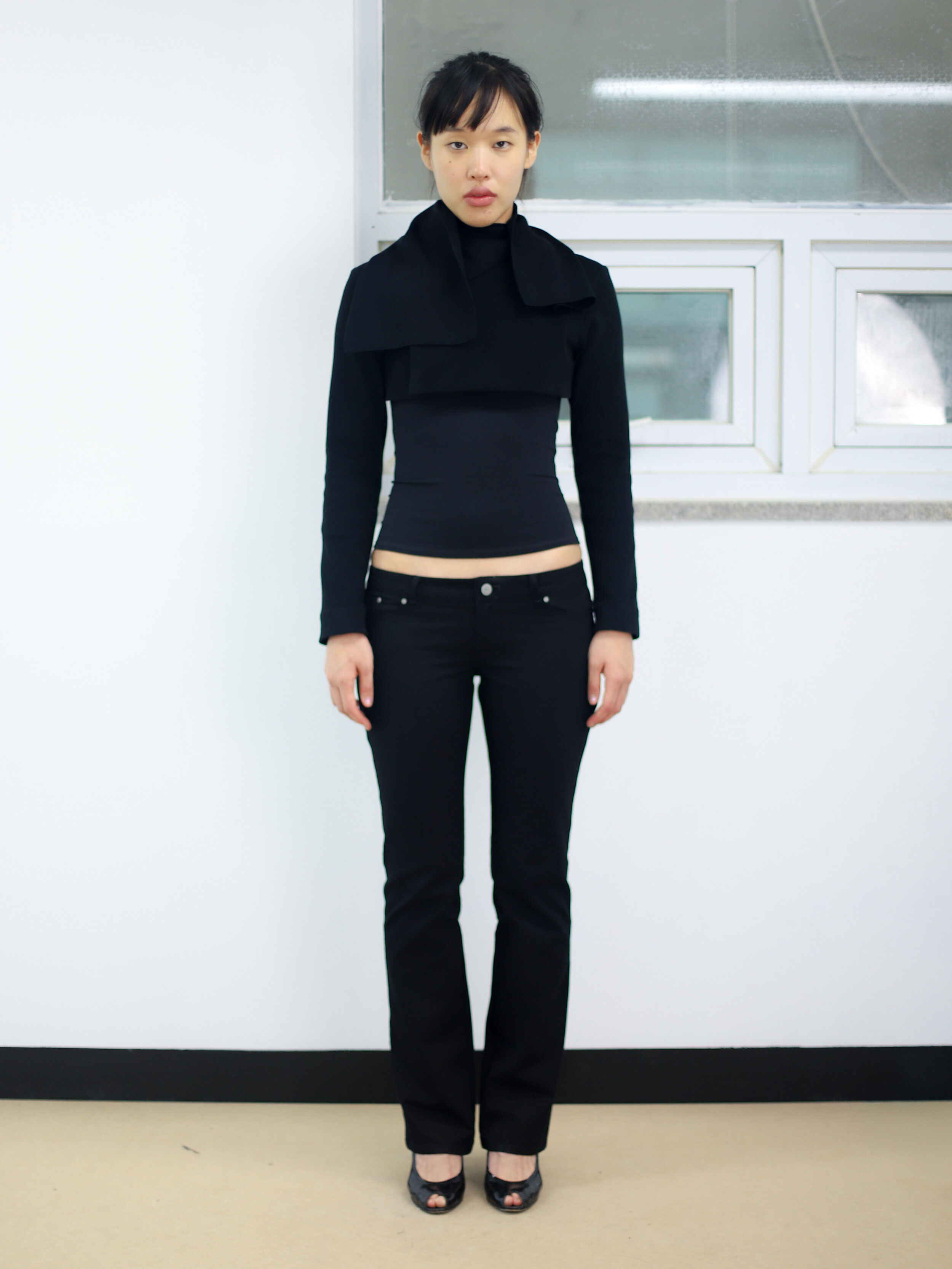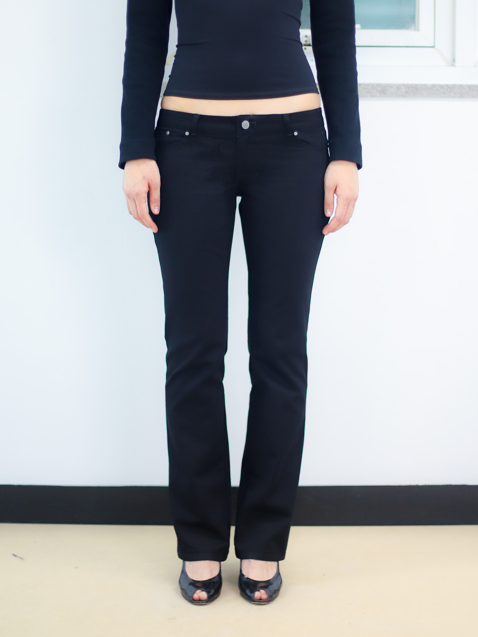 로우라이즈 핏의 스트레이트 진. YKK 캔톤 단추와 망사 디자인의 리벳, 뒷 중앙의 요크와 v-notch 슬릿 등이 포인트가 되어 베이직한 핏에 디테일의 밸런스를 잡아 마무리되었습니다.