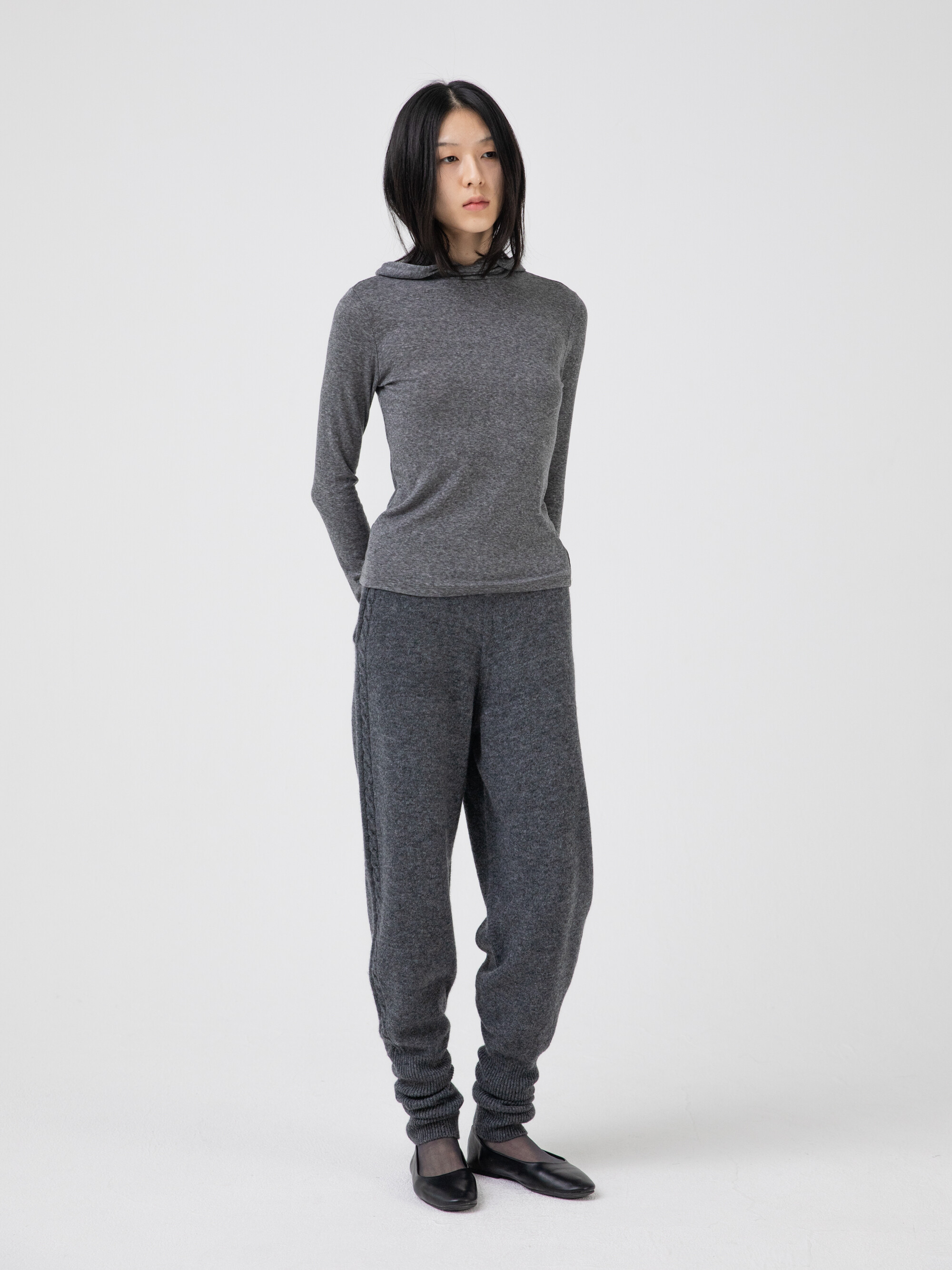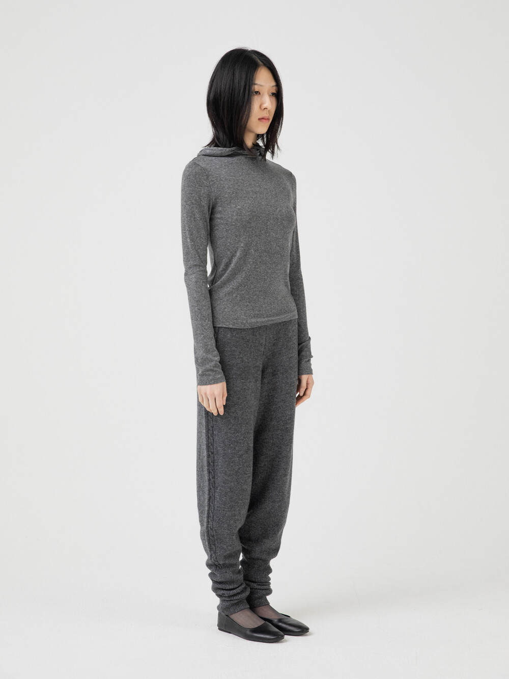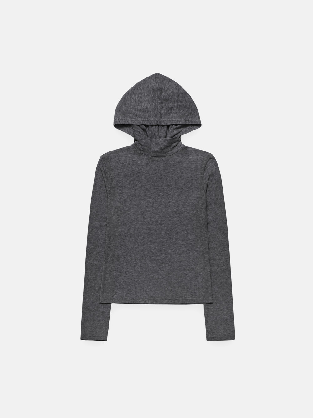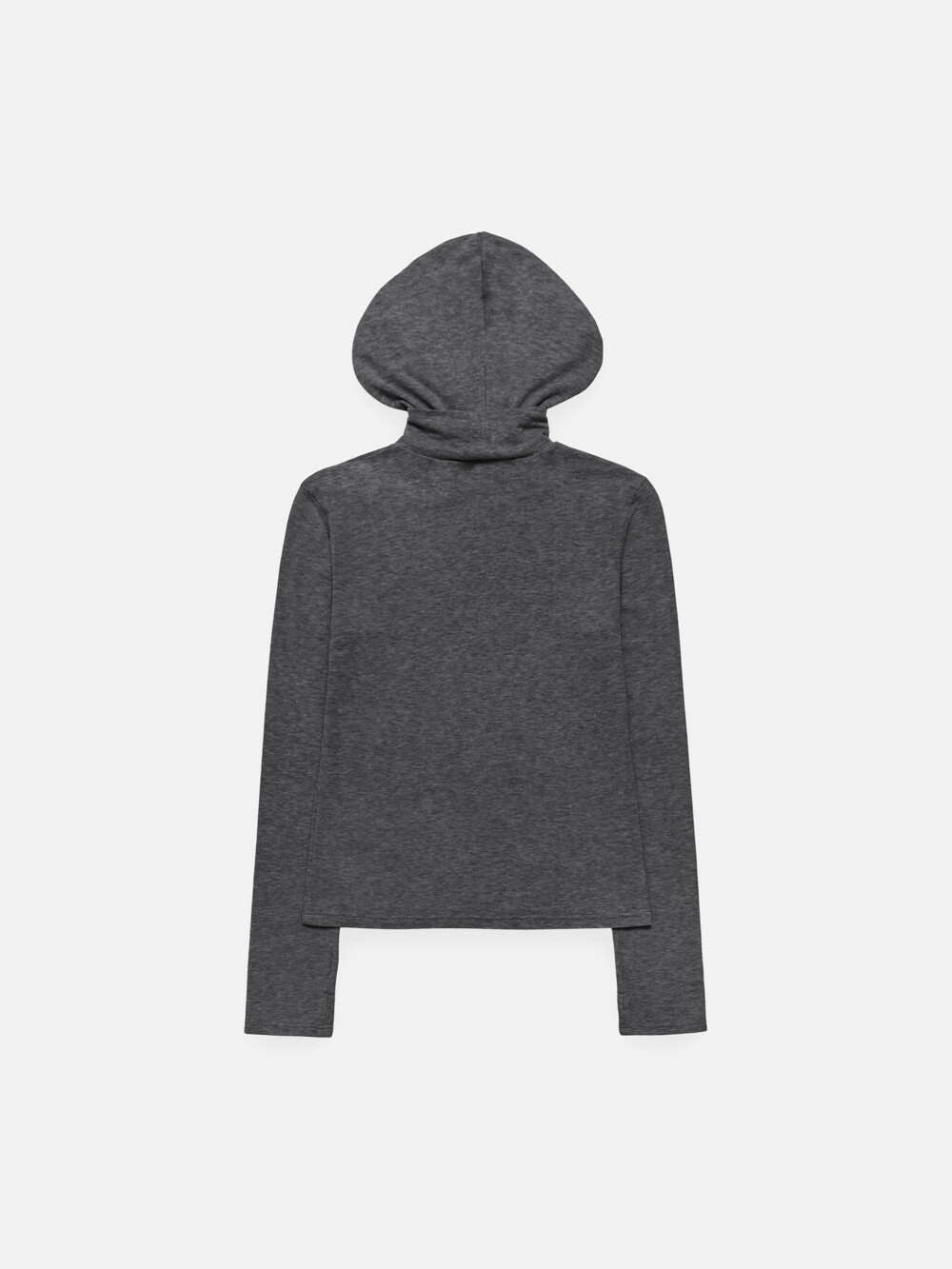 ∙ 부드럽게 주름지는 하이넥과 후디가 같이 있는 디자인