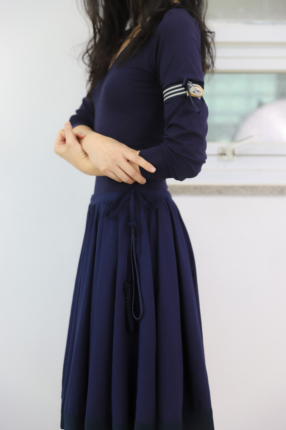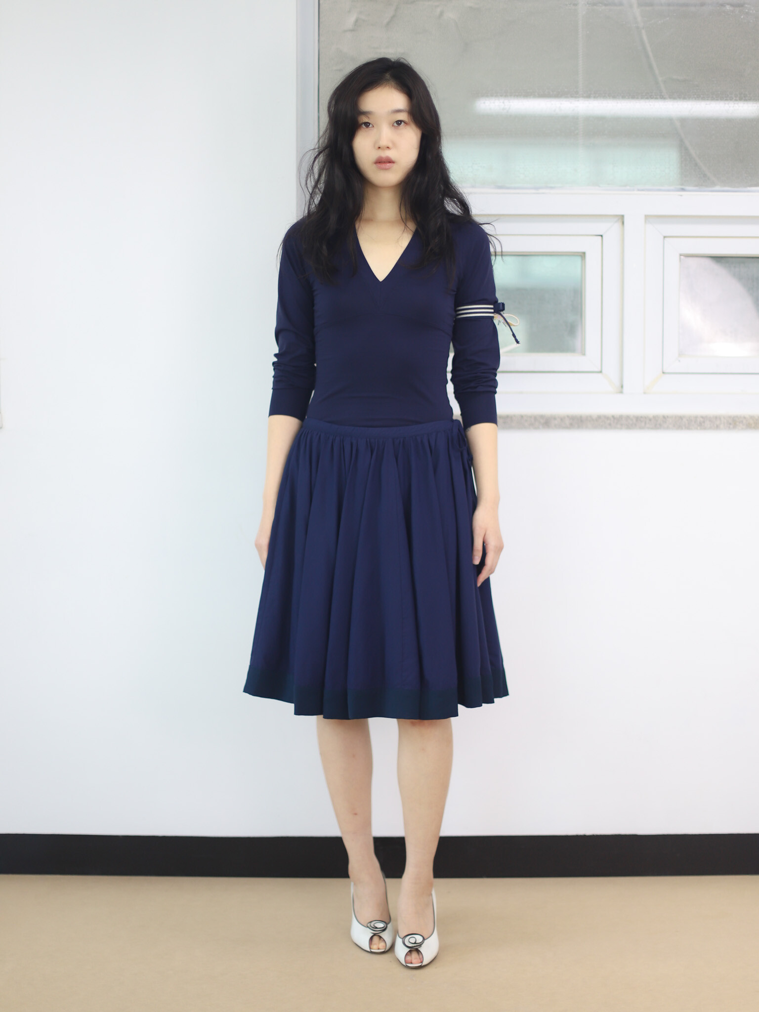∙ 24개의 조각 패널로 구성된 로우 웨이스트의 서큘러 스커트