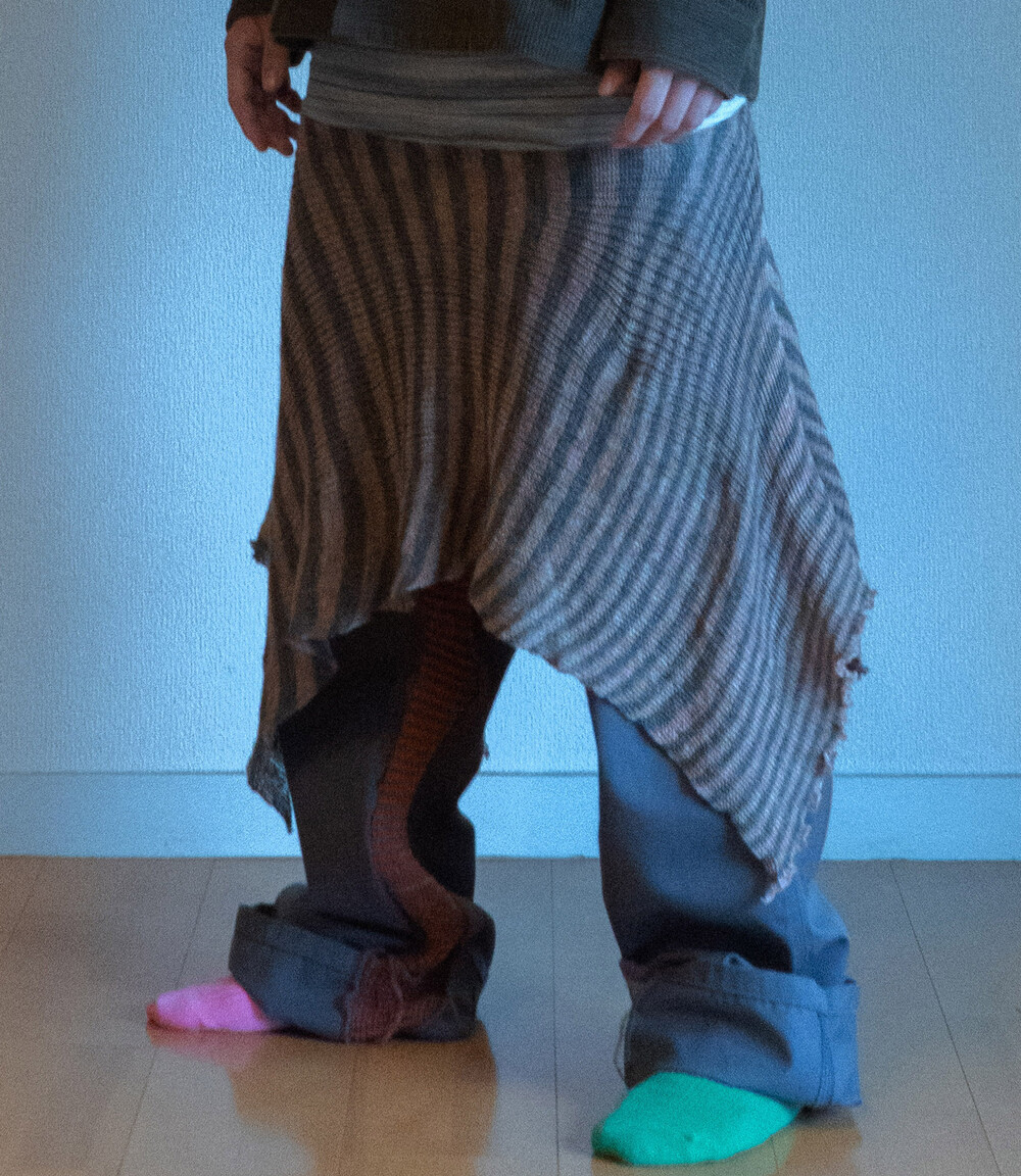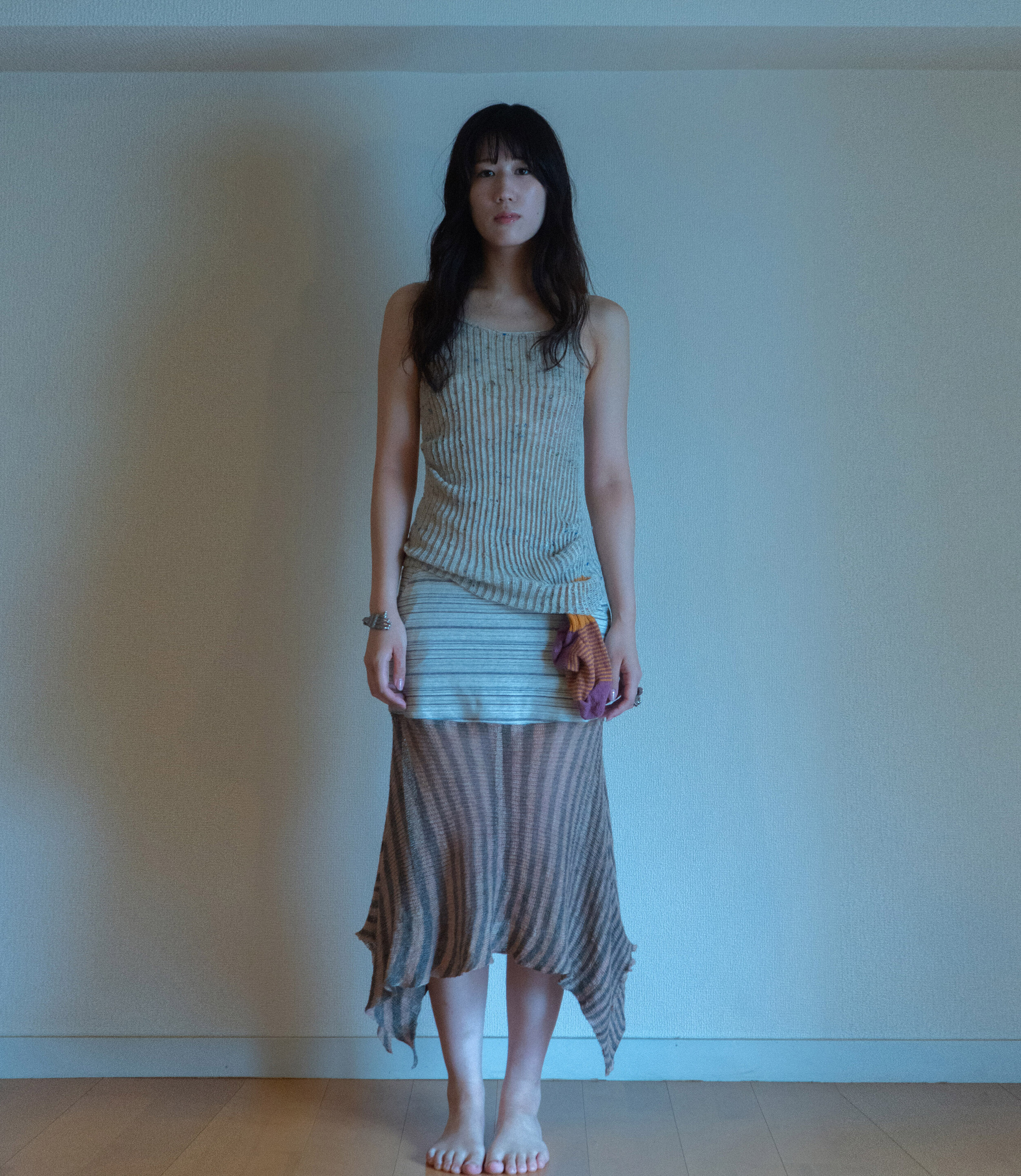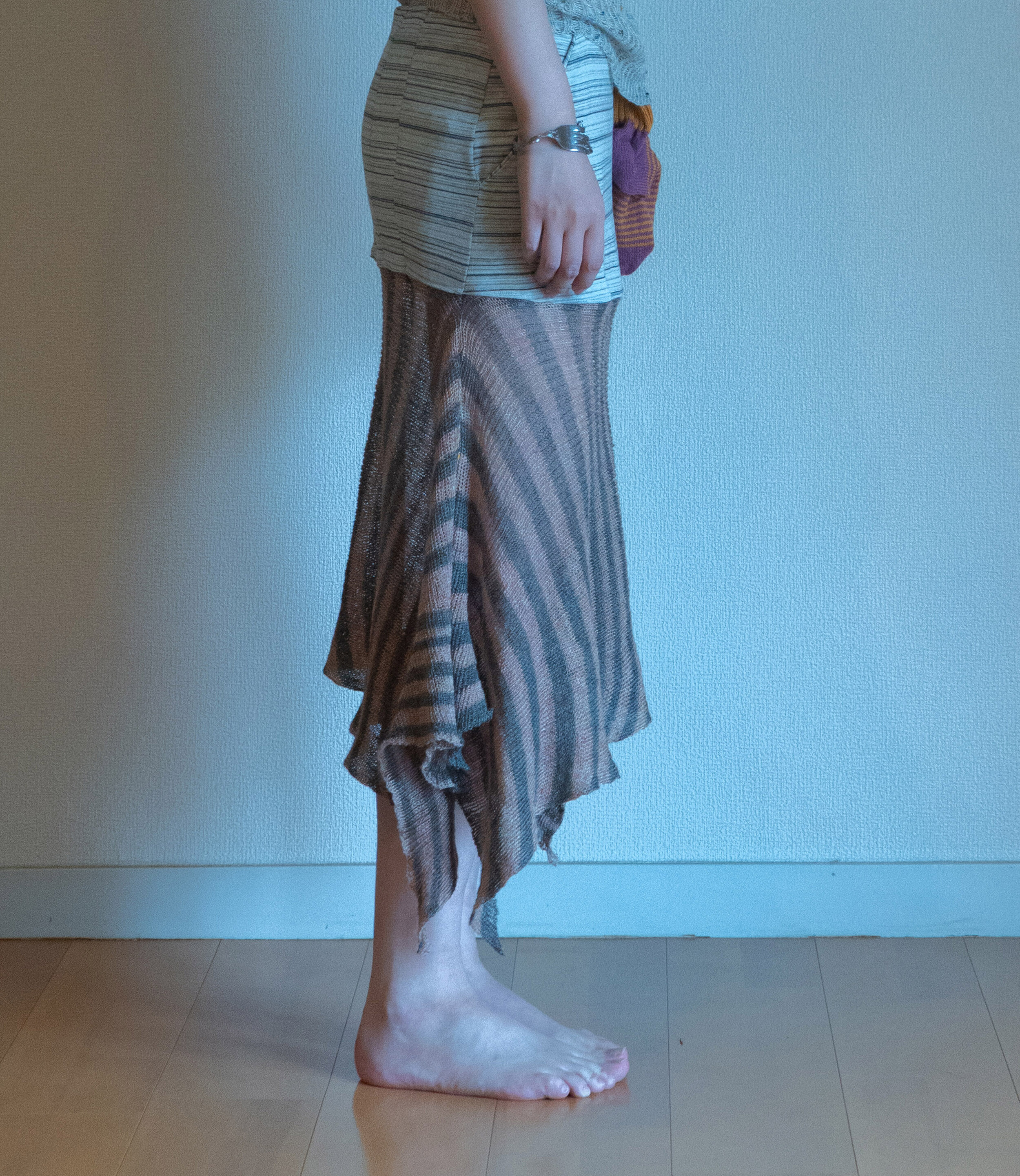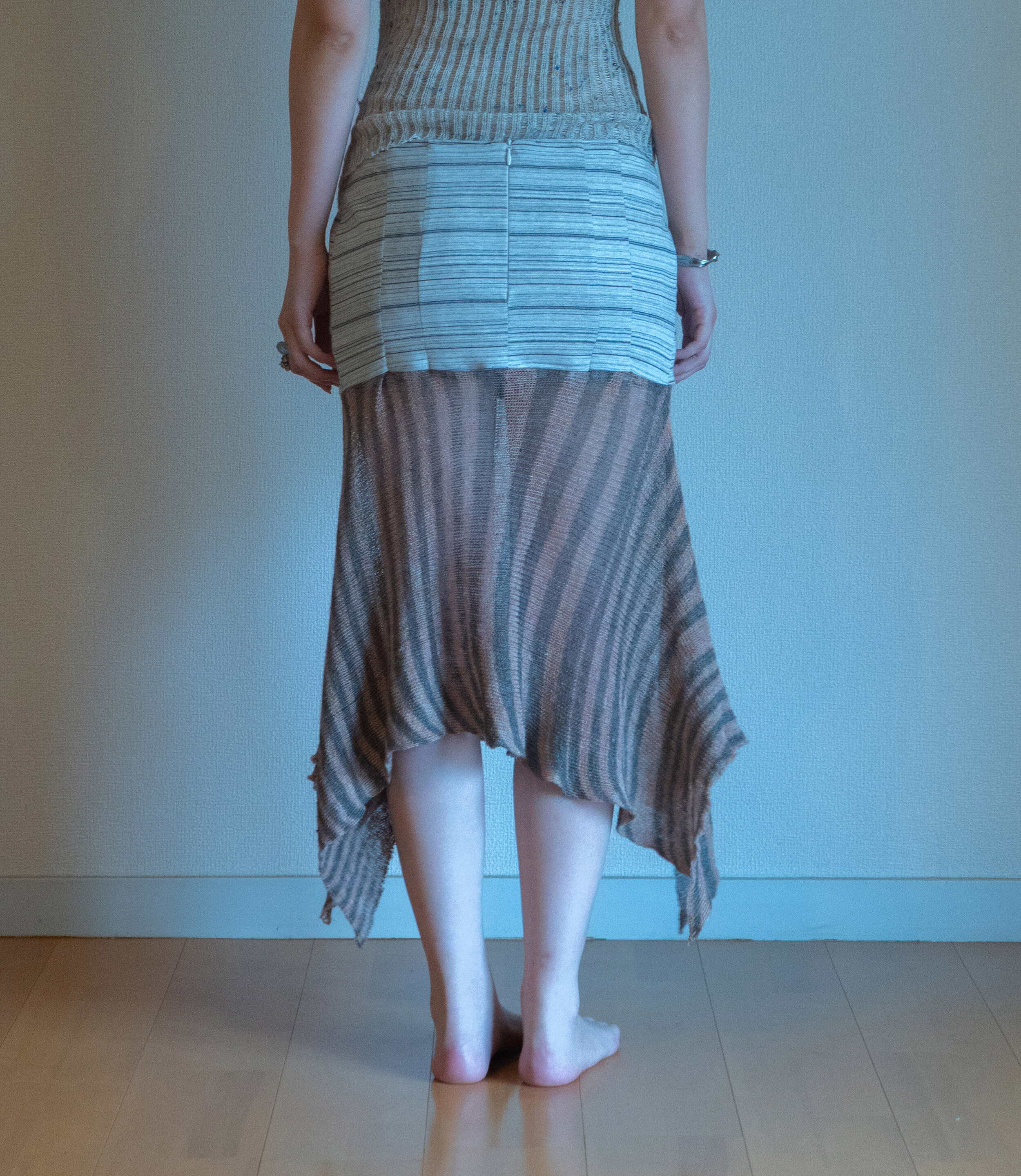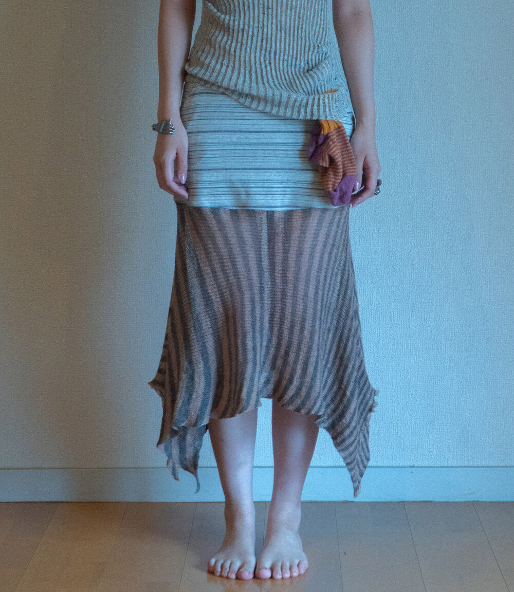 ∙ 은은한 시스루의 린넨 니트 소재의 미묘한 빈티지 무드의 플레어 스커트.