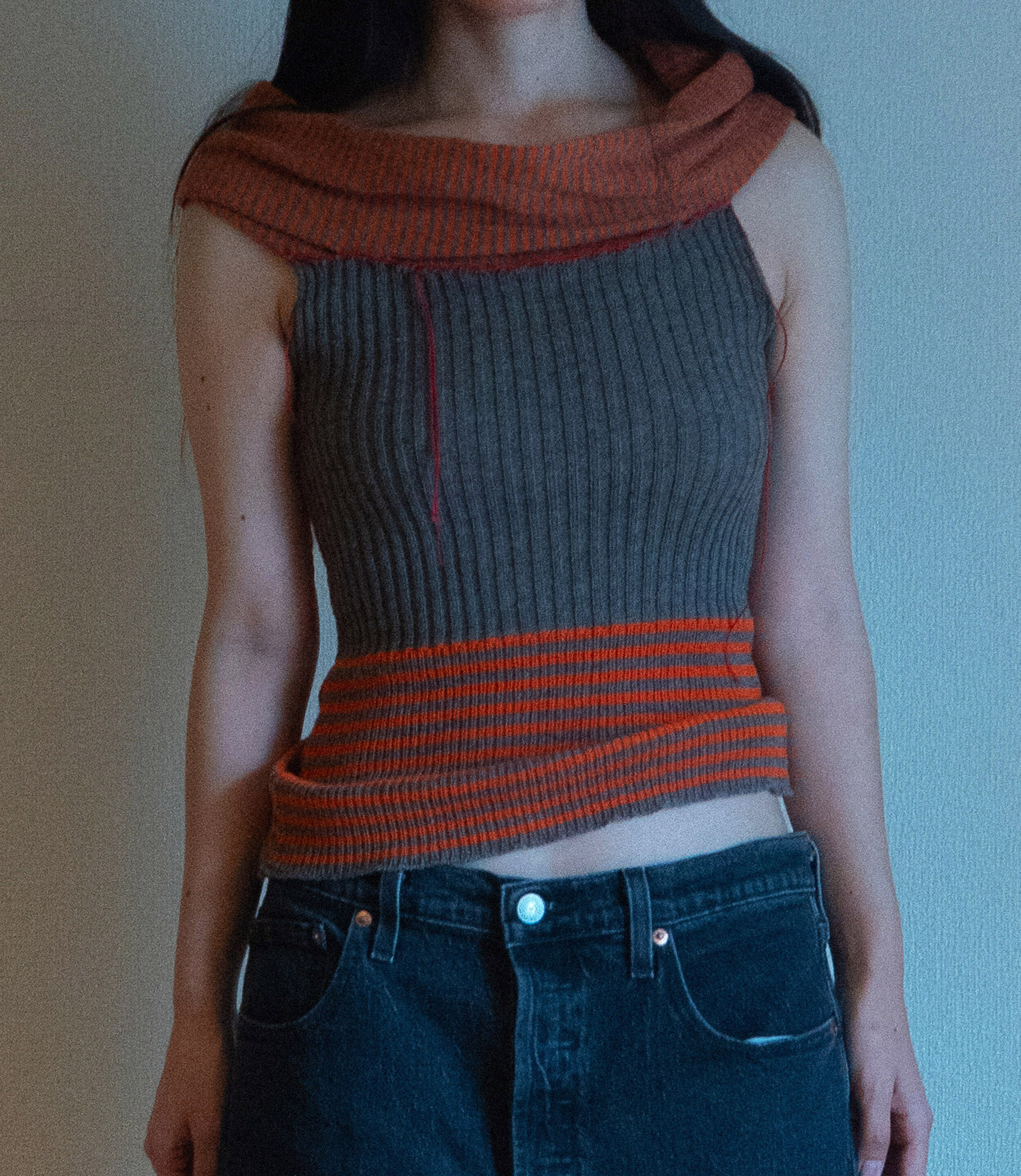 ∙ 스트라이프 울 니트 탑으로, 부드럽게 드레이프되는 카울 네크라인.